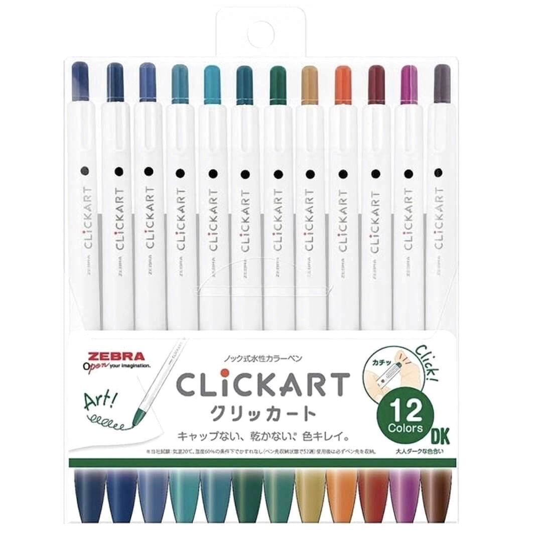 Zebra ClickArt Retractable Marker Pen - 12 Color Set - DK