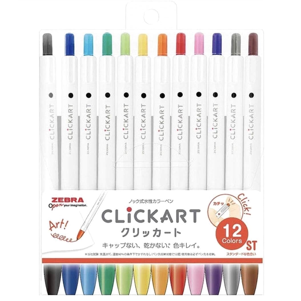 Zebra ClickArt Retractable Marker Pen - 12 Color Set - ST